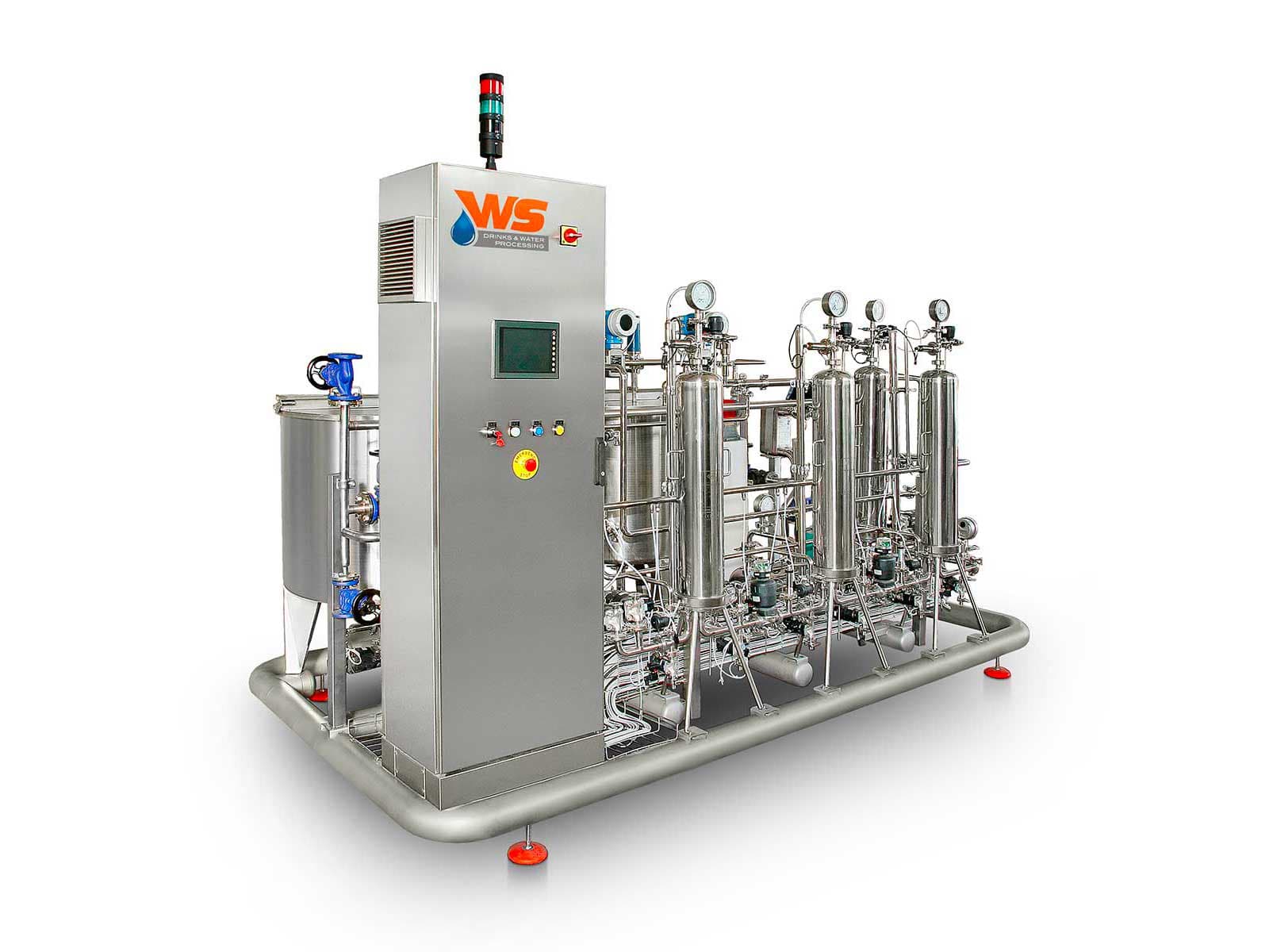 WS opera en el sector de las bebidas: cada aparato está fabricado expresamente para este sector. Cada dispositivo se dimensiona y configura caso por caso según los datos específicos del proyecto. Los materiales de contacto con el producto son adecuados para aplicaciones en bebidas y alimentos. El diseño se realiza para garantizar un alto grado de higiene y para trabajar en condiciones de seguridad y con mínimo requisito de mantenimiento. Todos nuestros sistemas son aptos para el proceso CIP.